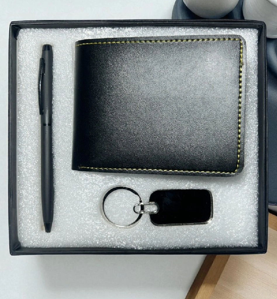 Premium 3-in-1 Black Wallet Gift Set – Classic Wallet, Pen & Keychain in Elegant Box