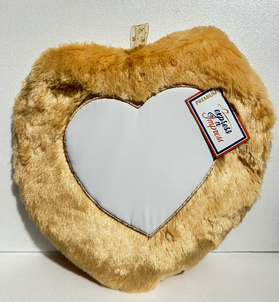 Add a touch of luxury to your heartfelt moments with this soft and elegant gold heart-shaped fur cushion, featuring a smooth white center panel ideal for personalized photo prints, names or special messages. Its rich golden tone and plush comfort make it a perfect personalized gift for anniversaries, weddings, Valentine’s Day, birthdays and grand celebrations, creating memories that shine forever.
